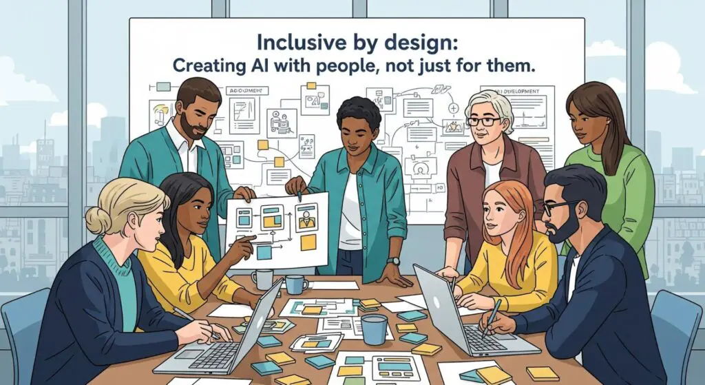 Business leaders must shift from “AI that works” to “AI that works for people.” This means designing systems that are transparent, accountable, and built with diverse stakeholder input from the beginning. Human-centered design practices—like co-creation, empathy mapping, and inclusive testing—ensure that AI respects context and cultural nuance. Real-world examples include inclusive hiring algorithms that account for systemic bias, or customer service bots designed to detect and respond empathetically to user frustration.
